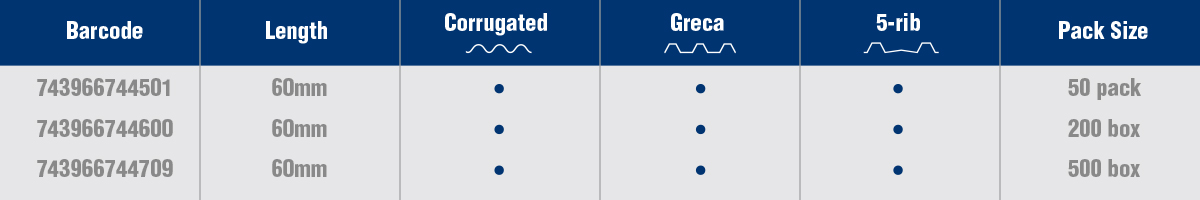 Kwik-Shot™ polycarbonate fasteners save 50% of labor time – creates a perfectly round 11mm expansion hole, and fix sheets in one go. A fool proof design for both beginners and professionals.
